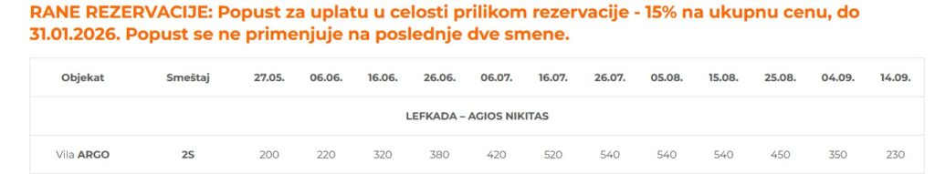 Napomena: sve cene u tabelama date su u eurima, a plative su isključivo u dinarskoj protivvrednosti prema srednjem kursu Narodne Banke Srbije, gotovinom, čekovima građana, platnim karticama ili uplatom na tekući račun Organizatora putovanja. Cena aranžmana garantovana je samo za uplaćeni deo ukupne sume, ostatak je podložan promeni u slučaju velike oscilacije kursa na monetarnom tržištu. Prilikom sklapanja ugovora korisnik aranžmana se opredeljuje za jedan od sledećih načina plaćanja:
