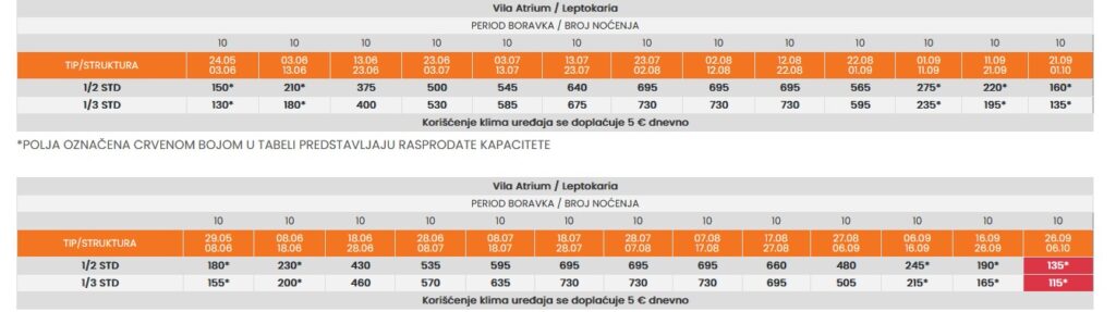 – Za korišćenje 1/2 kao 1/1 u slučaju autobuskog prevoza, plaća se cena smeštaja za 2 osobe i prevoz za jednu osobu.