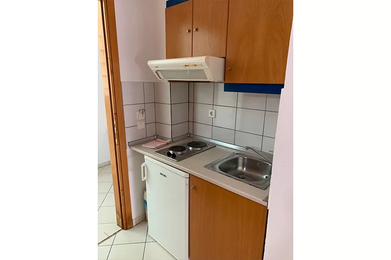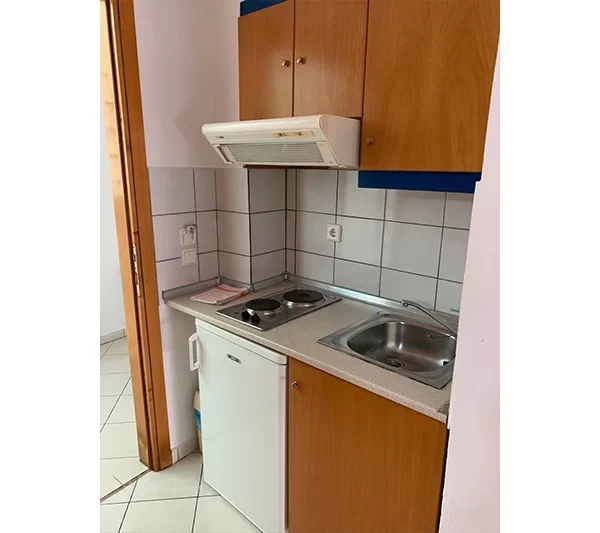Studio 02: klima (uključena u cenu), smešteni su na drugom spratu: soba sa dva standardna ležaja, kuhinjski deo (frižider, rešo sa dve ringle, aspirator, električni bokal, posuđe za odgovarajući broj osoba), TV, sef, kupatilo sa peškirima i terasa.