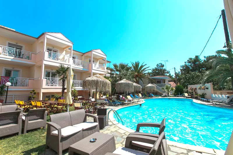 Apartmanska dvospratna zgrada sa prostranim studijima i apartmanima. Poseduje bazen, koji deli sa hotelom Potos. Korišćenje bazena je slobodno za goste apartmana, ukoliko se konzumira neko od pića ili kafa iz bara kraj bazena. Svi apartmani i studija su okrenuti prema mirnoj sporednoj ulici, imaju prostranu terasu sa garniturom za sedenje i obedovanje.