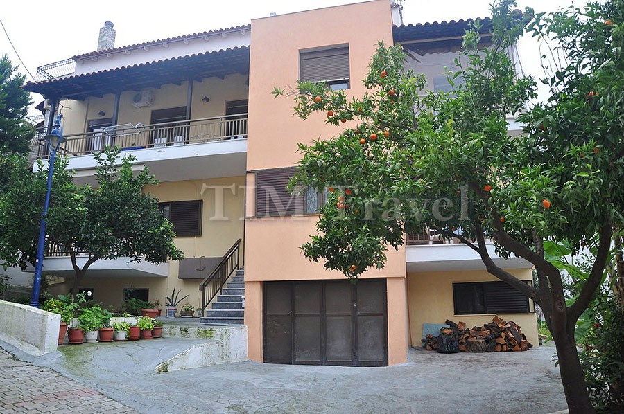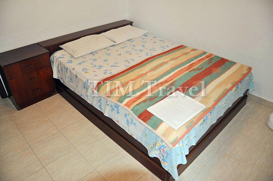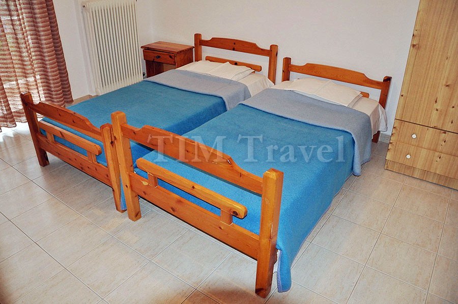 Opis: Vila raspolaže dupleks apartmanima predviđenim za smeštaj pet osoba (dve spavaće sobe, u jednoj su dva standardna, u drugoj grčki bračni krevet, kao i kauč na razvlačenje u trpezarijsko kuhinjskom delu), i apartmanom za smeštaj četiri osobe (bračni krevet u spavaćoj sobi, dok je u kuhinjskom delu standardni krevet sa krevetom na izvlačenje). Svi apartmani su klimatizovani (korišćenje klima uređaja je uračunato u cenu od 01.07. do 31.08.), smešteni su na prvom i drugom spratu i poseduju kuhinjski deo opremljen za predviđen broj osoba, TV, TWC i terasu sa garniturom za sedenje.