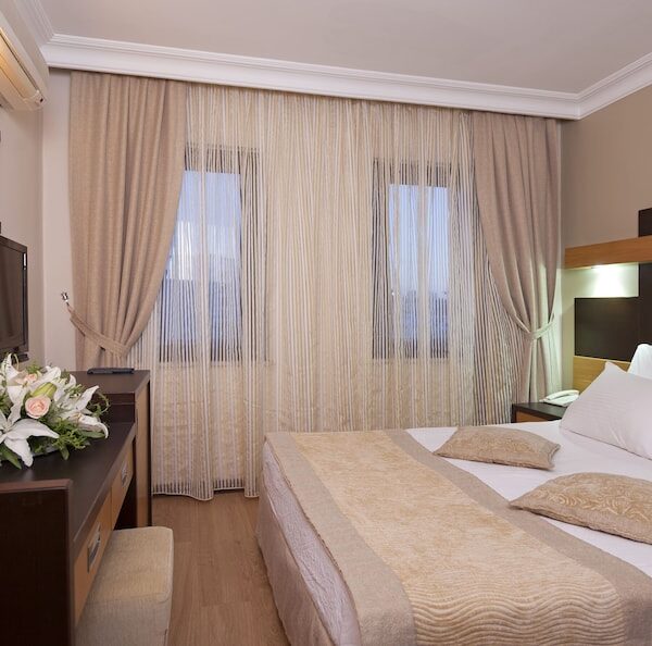 Lokacija: Hotel je udaljen 120 km od aerodroma u Antaliji i nalazi se u centru Alanje. Sagradjen je 1996. godine a renoviran je 2015. Godine i zauzima ukupno 2.000 m2.