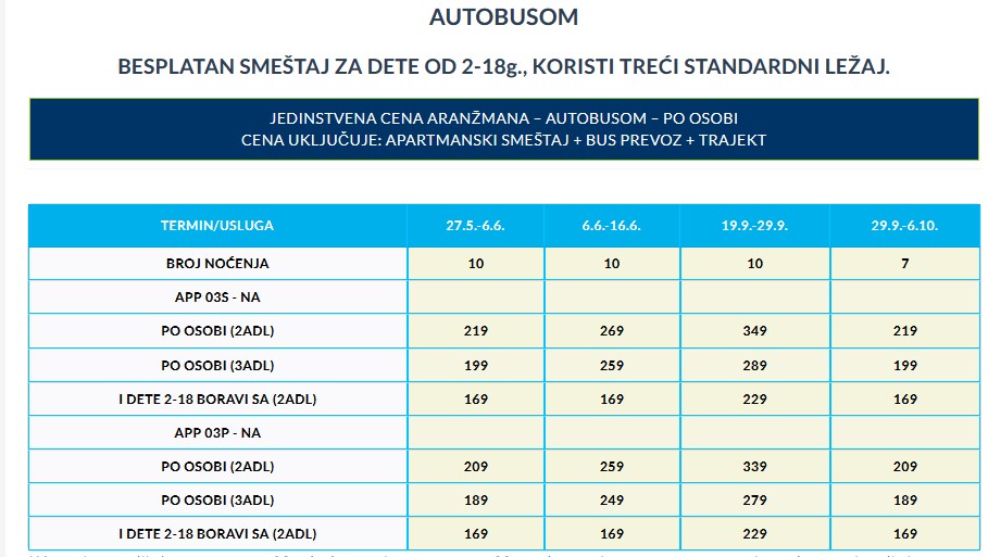 CENOVNIK LETO 2025. – AUTOBUSKI PREVOZ
