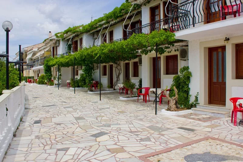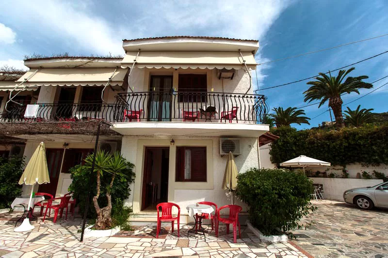 Vila je smeštena na blagoj uzvisini Lasija u neposrednoj blizini glavne ulice (100m) i 350m od najbliže plaže, a od plaže Gradakia oko 550m, jedne od lepših i održavanih plaža u Lasiju. Supermarket se nalazi 100m od vile. Udaljena je 7km od aerodroma i samo 1,5km od glavnog ostrvskog grada Argostolija sa kojim je povezana odličnom dnevnom autobuskom vezom. Vila je izgrađena u stilu tradicionalne ostrvske arhitekture, lepo uređena i održavana sa sopstvenim velikim otvorenim prostorom – cvetnim vrtom sa negovanom travom, dečjim igralištem i prostorom za istinski dnevni odmor, mir i uživanje, uz miris borovine i pogledom na more. Gostima je na raspolaganju kameni roštilj i tradicionalna rerna – peka. Vila ima parking i wi-fi internet.
