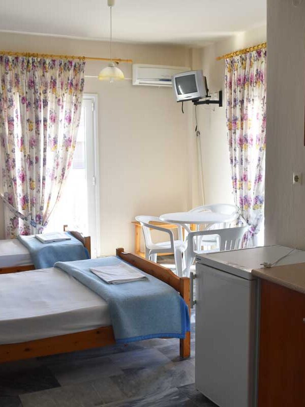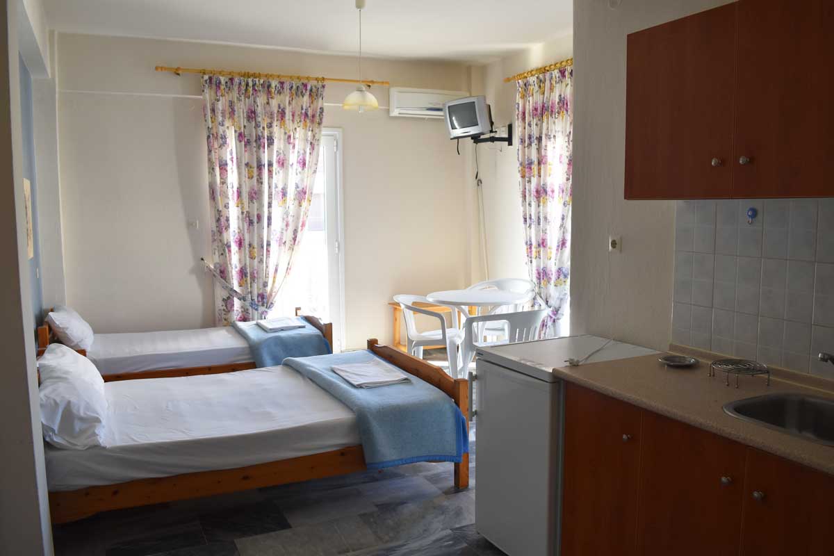 Vila raspolaže dvokrevetnim, trokrevetnim i četvorokrevetnim  studijima, a u njenom sastavu su i četvorokrevetni i petokrevetni  dupleksi koji su smešteni na prvom, drugom i trećem spratu. Sve  smeštajne jedinice imaju standardno opremljenu kuhinju sa elementima  (frižider, rešo), kupatilo, kao i TV i klima uređaje. Klima uređaj se  dodatno doplaćuje na licu mesta (7-10€ po danu).