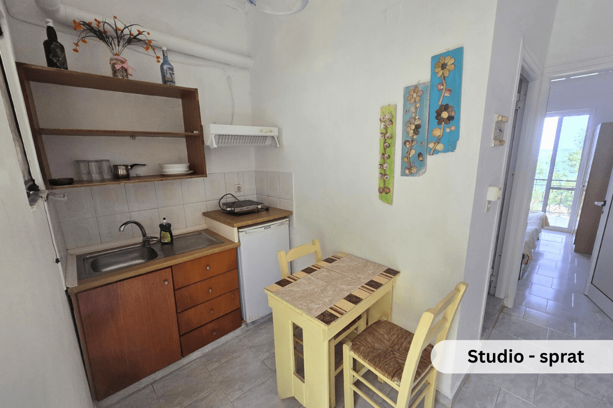 Studiji i dupleks u svom sastavu imaju čajnu kuhinju, kupatilo, TV. Klima uređaj se dodatno doplaćuje na licu mesta (7-10€ po danu).