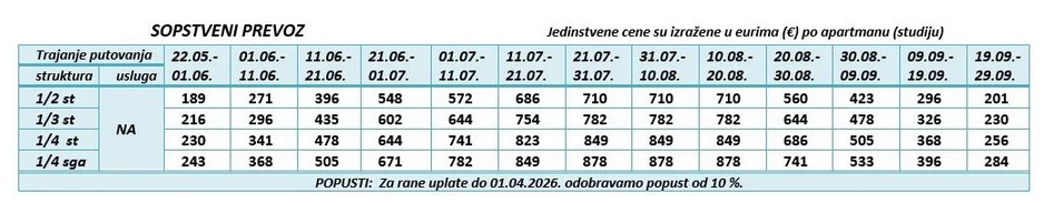 Napomena: Klima je uključena u cenu (osim za last minute ponude)!