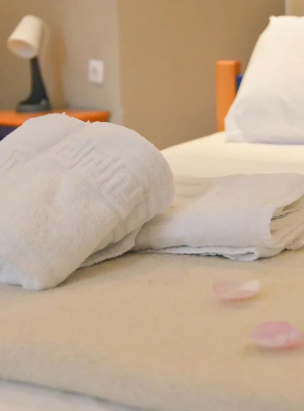 Struktura dvokrevetnih studija: soba raspolaže francuskim ležajem ili ima dva singl ležaja, kuhinju.