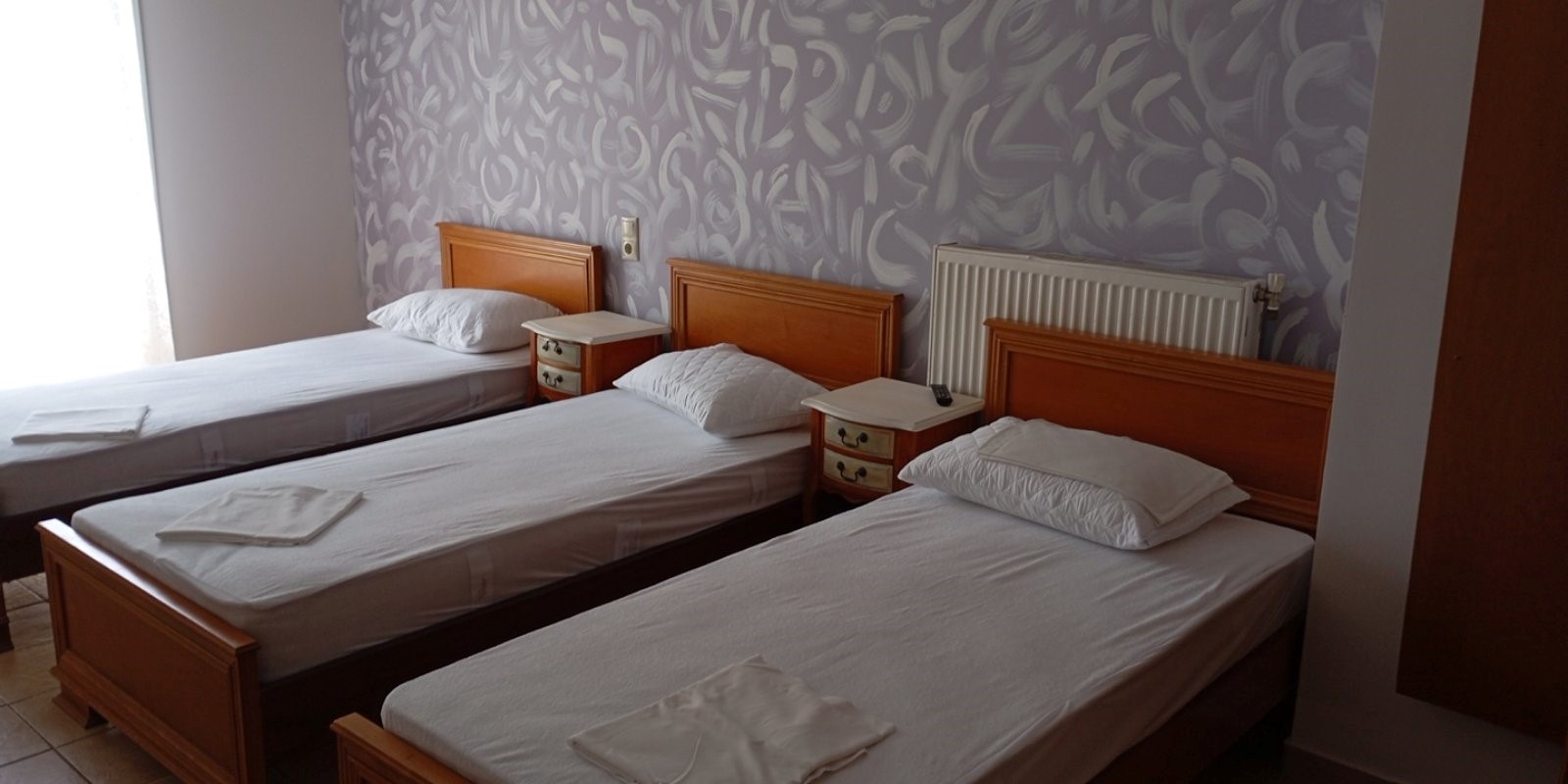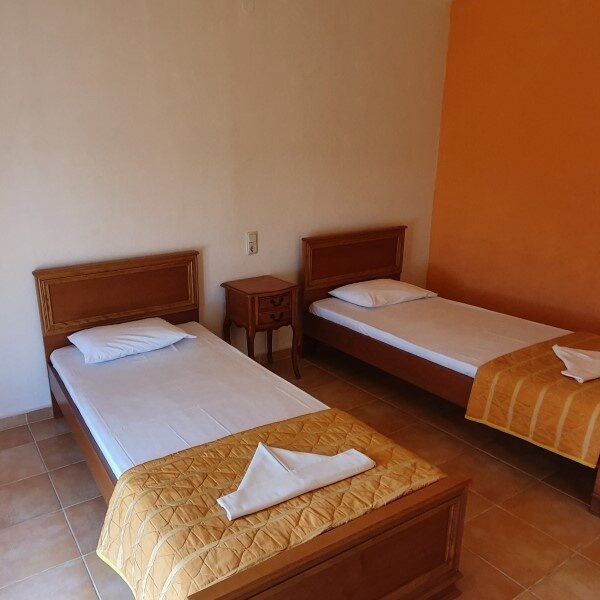 Vila Nikos se nalazi na samoj plaži u Leptokariji, prekoputa mora. Sa  terase vile, uz jutarnju kafu, uživaćete u izlasku sunca i šumu talasa, a  u večernjim satima uz degustaciju kvalitetnog grčkog vina ispratiti  zalazak sunca. Vila poseduje dvokrevetne i trokrevetne studije,  četvorokrevetne i petokrevetne apartmane i petokrevetni suite. Sve  smeštajne jedinice imaju kompletno opremljenu kuhinju, kupatilo i terasu  sa garniturom za sedenje.