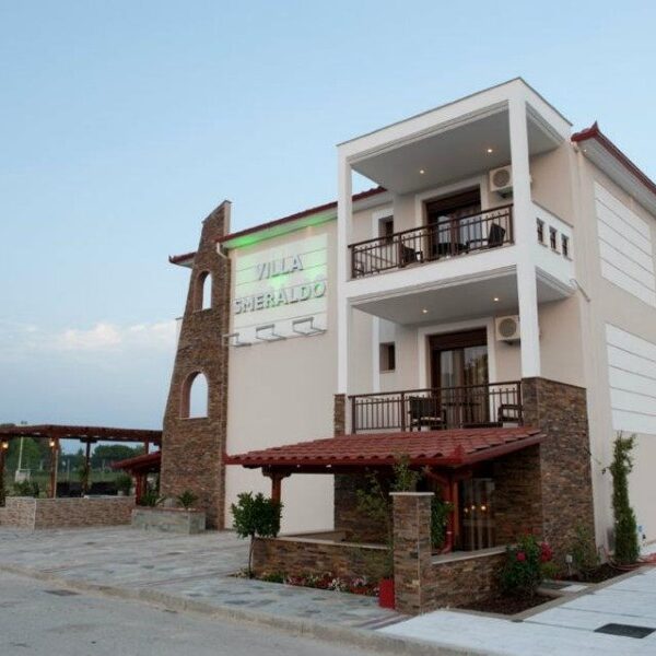 Vila Smeraldo je nedavno sagrađena, moderne arhitekture, koja je izdvaja od ostalih vila i čini je jednom od najlepših vila u Nea Vrasni. Ovu vilu posebno čini besprekorno uredjeno dvorište sa prelepom fontanom, pored koje se nalazi letnjikovac sa garniturom za sedenje, gde ćete moći sa porodicom ili prijateljima provesti deo dana. Komforni studiji su stilski uređeni, gde se i o najmanjim detaljima vodilo računa. Ova vila zadovoljiće ukuse i najprobirljivijih gostiju. Poseduje recepciju, toalet i zajedničku prostoriju za odlaganje stavri na dan smene. Moguće je parkiranje automobila u ulici ispred vile ili na proširenju koje se nalazi preko puta vile.
