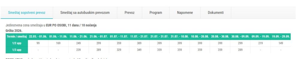 • organizator putovanja ne garantuje spratnost, pogled, broj smeštajne jedinice, sedište u autobusu, ukoliko to nije predviđeno cenovnikom i programom putovanja uz mogućnost doplate