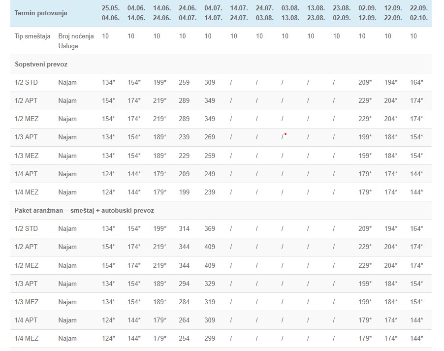 3.Dete do 10 god, odnosno do 12 god. u zavisnosti od rezervisanog smeštajnog objekta, ukoliko ne koristi sopstveni ležaj u smeštajnoj jedinici, plaća jedinstvenu cenu autobuskog prevoza za putnike koji koriste samo uslugu prevoza.